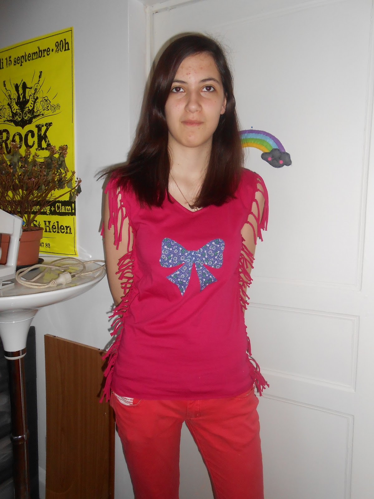 Sur le même modèle que le précédent, encore une petite customisation de tee shirt avec franges sur les côtés.